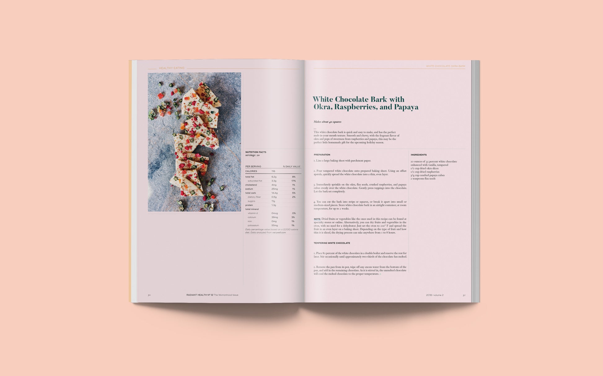 More than a magazine, each volume of Radiant Health is a beautifully designed coffee table magazine printed on premium paper. 180 pages // soft touch cover.