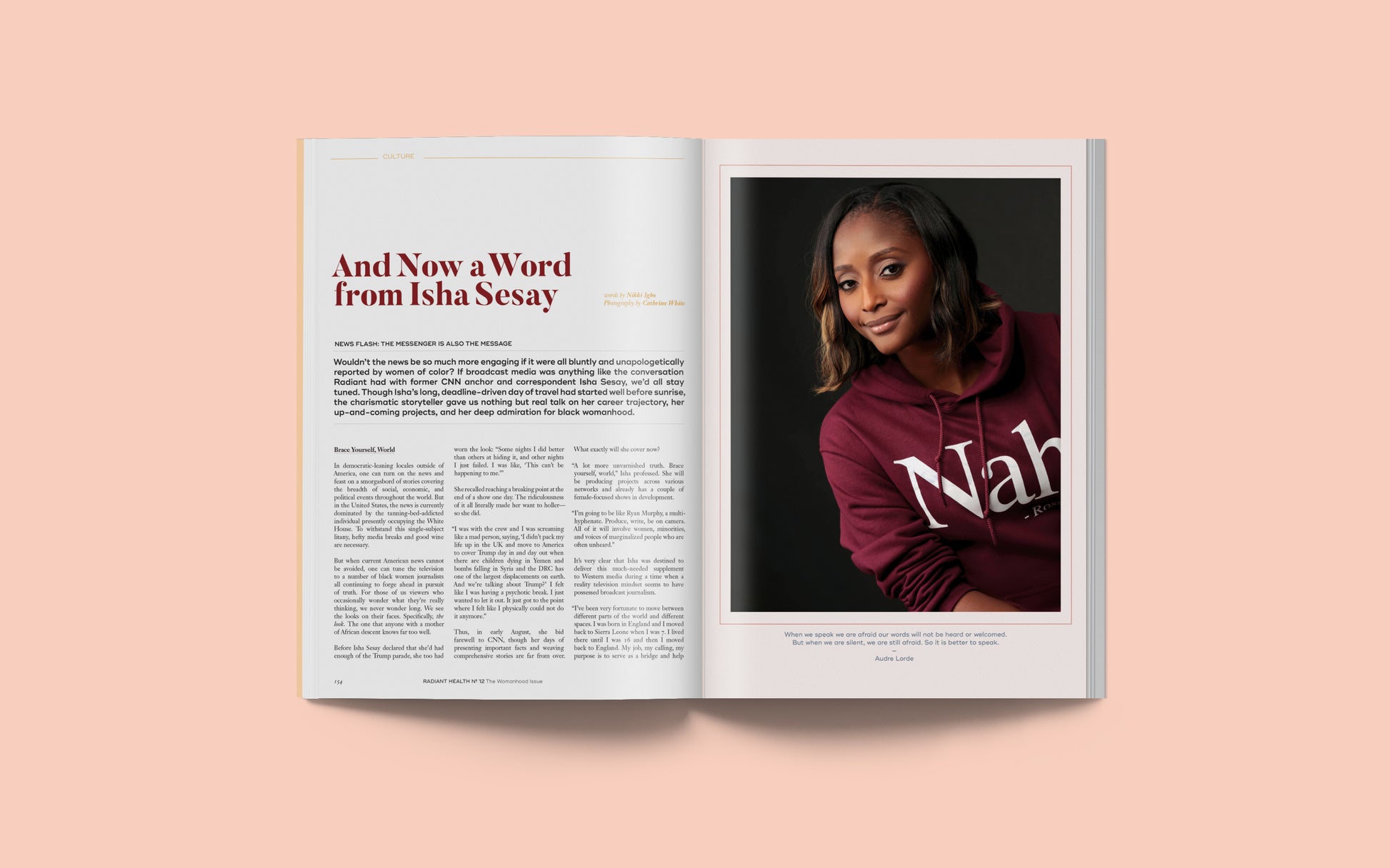 Radiant Issue No. 12, The Womanhood Issue, is an ode to Black womanhood, a warm embrace of all that makes us women, a celebration of how far we’ve come, a bold examination of the battles yet unwon and a call to unapologetically press on.